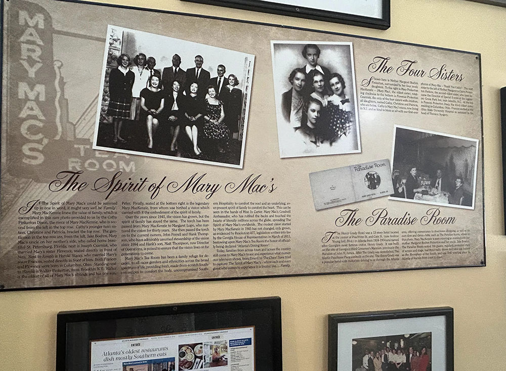 At the time, a woman couldn’t just open up a restaurant, so many female proprietors used the more refined Southern name of “Tea Room.” Mary Mac’s Tea Room was one of 16 tearooms in Atlanta and seated 75 guests. Today, Mary Mac’s is the only original tearoom that remains.
